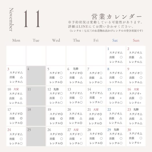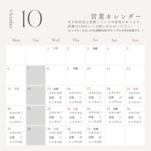 ご予約をお考えの方必見!六曜付き空き状況カレンダー(10/13更新)