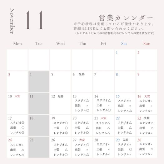 ご予約をお考えの方必見!六曜付き空き状況カレンダー(11/10更新)