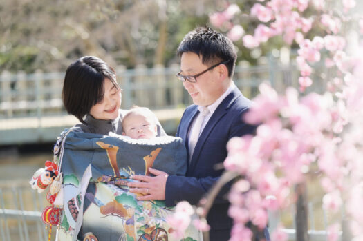 ロケーション撮影でのお参り風景や自然な景色の中でのご家族写真だけでなく、天候の心配のないスタジオ撮影でやっと出会えた我が子の可愛さを余すことなくご撮影。