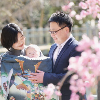 ロケーション撮影でのお参り風景や自然な景色の中でのご家族写真だけでなく、天候の心配のないスタジオ撮影でやっと出会えた我が子の可愛さを余すことなくご撮影。