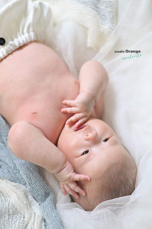 でも、外は寒いし、、と思われる方もいらっしゃいますが、スタジオでの撮影ならあたたかい暖房の効いた場所でのご撮影ですので、赤ちゃん、パパママの負担少なく安心して撮影できます!