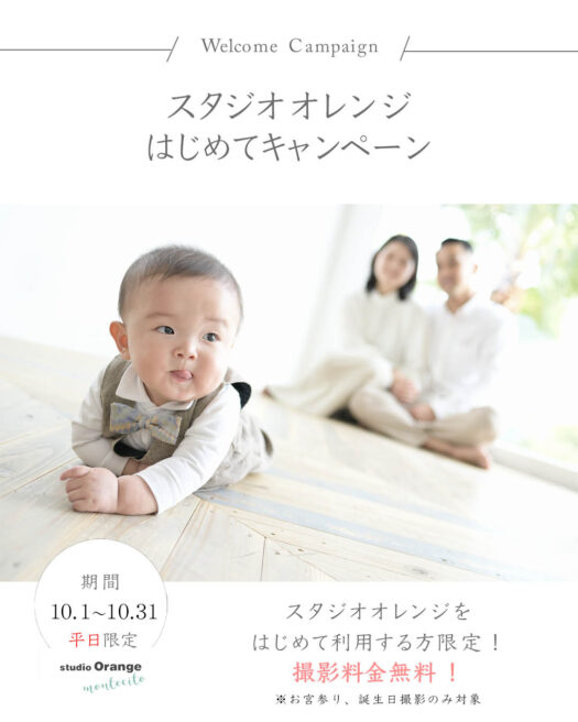 平日限定ですが、この機会にぜひスタジオオレンジの優しい光の中で、はじめての家族の記録を残してくださいね。